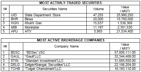 114,345 shares of 46 joint stock companies worth of MNT108,256,575.00 traded.