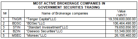 202,750 Government retail bonds worth of MNT19,605,519,500.00 traded through one trading session. 173 Government retail bonds worth MNT17,261,870.00 traded on secondary market trading.