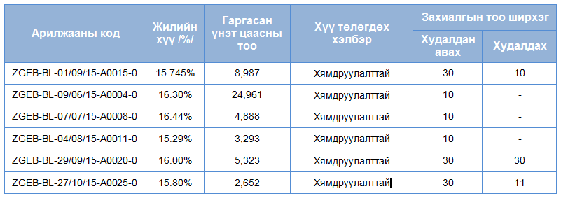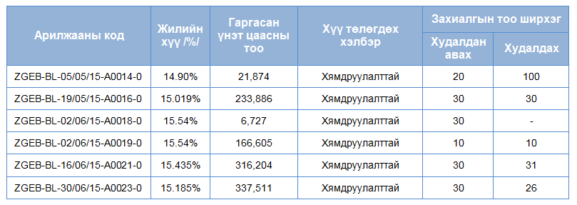 2015 оны 4 дүгээр сарын 24-ны өдрийн байдлаар ЗГҮЦ-ны хоёрдогч зах зээл дээр худалдах болон худалдан авах захиалгыг доорх хүснэгтээс харна уу.