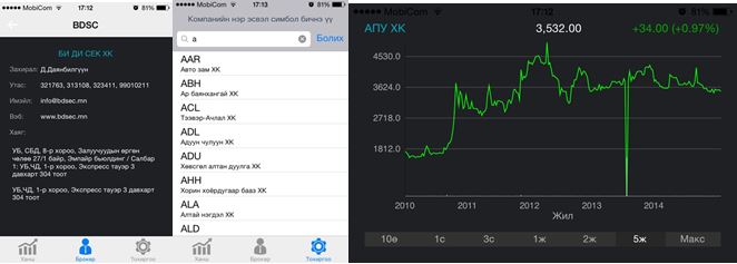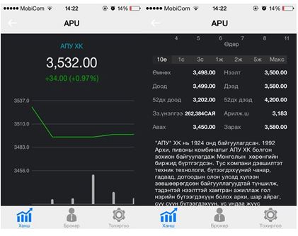 Монголын хөрөнгийн бирж нь өдөр тутмын арилжааны болон ханшийн мэдээллийг түгээх гар утас болон хөдөлгөөнт төхөөрөмжид зориулагдсан мобайл апплекейшны анхны хувилбарыг 2014 оны 10 дугаарын сарын 24 –ний өдөр хэрэглээнд нэвтрүүлсэн билээ.