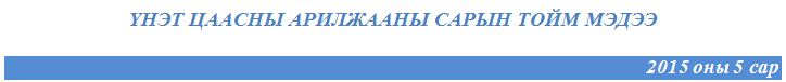2015 оны эхний 5 сарын байдлаар Монголын хөрөнгийн биржийн үнэт цаасны арилжаанд оролцсон гадаадад, дотоодын иргэд, аж ахуйн нэгжийн арилжааны нийт үнийн дүн 196.6 тэрбум төгрөгт хүрч, өнгөрсөн оны мөн үеэс 187.7 тэрбум төгрөгөөр эрс нэмэгдсэн байна.