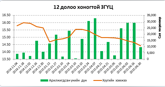 МХБ дээр арилжигдаж буй ЗГҮЦ-ыг хүүгийн хэмжээ болон арилжигдсан хэмжээгээр нь авч үзвэл 12 долоо хоног буюу 3 сарын хугацаатай ЗГҮЦ-ны хүүгийн хэмжээ буурсан хэдий ч арилжааны хэмжээ өссөн байна.