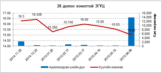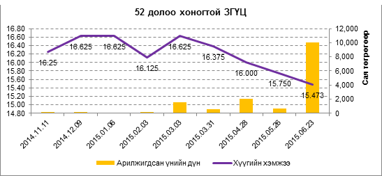 Мөн 28 болон 52 долоо хоногтой ЗГҮЦ-ны хүүгийн хэмжээ болон арилжааны хэмжээ дараах байдалтай байна.
