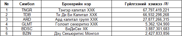 ЗГҮЦ-ны анхдагч зах зээлийн арилжаанд дараах брокер дилерийн компаниуд идэвхтэй оролцсон байна.