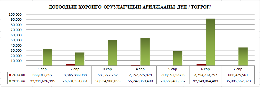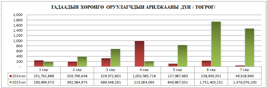 Үнэт цаасны зах зээлийн арилжаанд гадаадын хөрөнгө оруулагчдын оролцооны идэвхийг 2015 оны эхний 7 сарын байдлаар авч үзэхэд өмнөх оны мөн үеэс 2.5 дахин нэмэгдэж, 5.5 тэрбум төгрөгт хүрсэн байна. Мөн дотоодын хөрөнгө оруулагчдын арилжааны идэвх өмнөх оны мөн үетэй харьцуулахад 28 дахин нэмэгдэж, нийт 323 тэрбум төгрөгт хүрчээ.